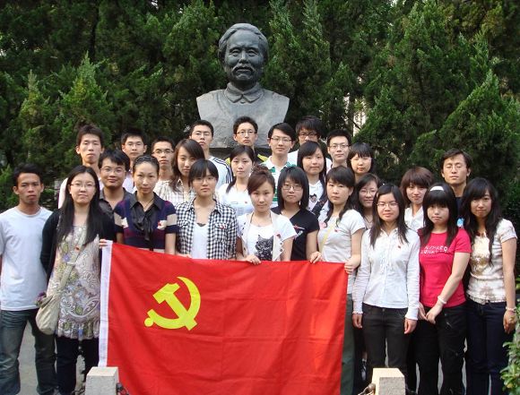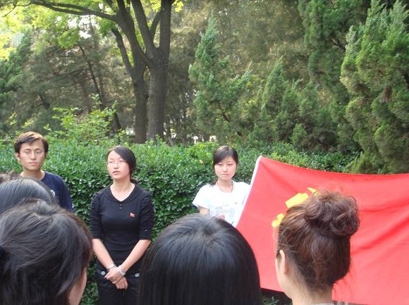 今年距離1919年的“五四運動”,剛好是90周年。90年前,“五四運動”代表著中國先進(jìn)分子的覺醒,是中國舊民主主義革命的結(jié)束和新民主主義革命的開端,中國革命從此進(jìn)入了一個新的歷史時期。2009年5月4日下午,在北京理工大學(xué)中心花園的徐特立老師銅像前,管理與經(jīng)濟學(xué)院2005級本科生第一、第二和第三黨支部,聯(lián)合組織了新黨員的宣誓儀式。學(xué)院老師彭明雪、以及三個支部的正式黨員和預(yù)備黨員共32人出席了活動。