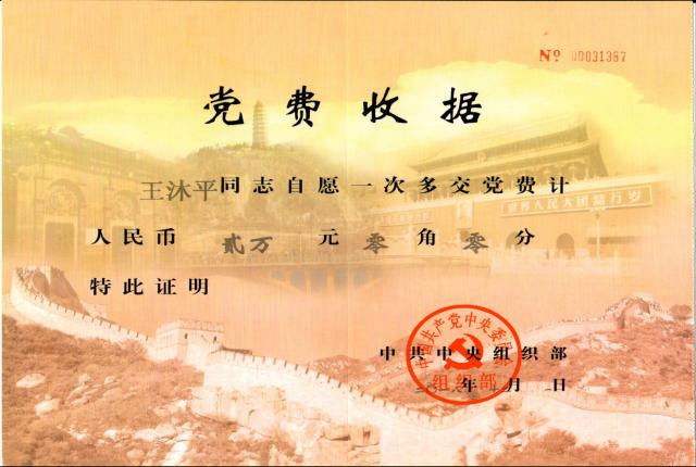 【新聞特寫】來自中共中央組織部的一份特殊黨費收據