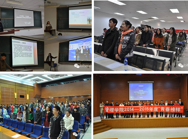 2014年12月13日至14日,管理與經濟學院順利舉行青春榜樣評選及宣講表彰大會。13日下午,青春榜樣評選活動在綜合教學樓A202教室舉行。管理與經濟學院團委副書記劉芳冰老師,團委學生副書記林瀚學長出席本次活動。到場的還有學院12、13、14級各個團支部書記及委員。
