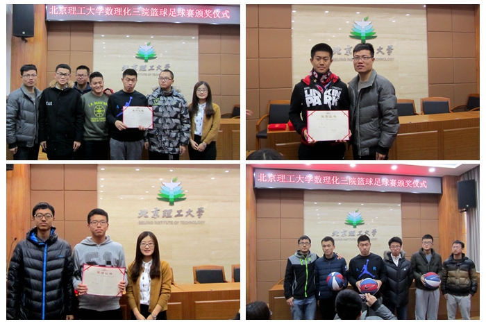 編輯:數學學院 董學敏 審核:衡靖 閱讀次數: 2015年12月1日,首屆數理化迎新杯足、籃球賽在我校良鄉校區生態樓報告廳舉行了簡短又正式的頒獎儀式,標志著本次比賽圓滿地落下了帷幕。