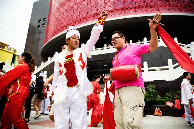 該幅參展攝影作品,由郭廣澤在參加2016年中國宋慶齡基金會和臺灣創價學會共同舉辦的“我的民俗相冊-兩岸青年走進陜西”活動中拍攝,經中國宋慶齡基金會推薦入選本次“砥礪奮進的五年”大型成就展。自2013年以來,北理工連續5年與宋慶齡基金會合作開展公益型社會實踐,為北理工學子提供了良好的實踐平臺。“當時,一名與我一同參加社會實踐的北理工同學,正在高興地與表演腰鼓的陜西當地居民一起載歌載舞,我就及時抓住了他們互動交流的瞬間,借此反映兩岸青年走入基層、了解學習中國傳統文化的精彩時刻。”郭廣澤這樣回憶道。