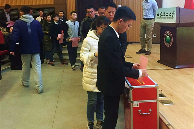 隨后,大會開始選舉。到場的團員代表莊嚴投下選票,選舉共青團北京理工大學宇航學院委員會出席共青團北京理工大學第二十四次代表大會的代表,經過認真嚴謹的計票工作,甘振坤等18名團員代表當選。