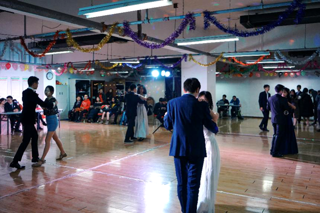 “冬日的熱情始終澎湃,只等待一個舞動的時機,為我們裝扮成最好的樣子,伴隨著音樂舞動青春。”主持人熱烈激昂的開場詞過后,第一組舞者登場,在“愛的華爾茲”的旋律中,以一支優美莊重的交際舞正式拉開了舞會的帷幕。本次舞會分為“輕舞成雙”和“熱蹈效應”兩個主題半場。上半場為舞會的主體環節,伴著悠揚舒緩的舞曲,男生們紳士地向舞伴發出邀請,翩然行走在舞池中央。本場舞會的禮儀隊環繞在舞池周圍,為舞者提供簡單的指導和建議,讓每一位到場的同學都能夠切身體驗到舞蹈的魅力。