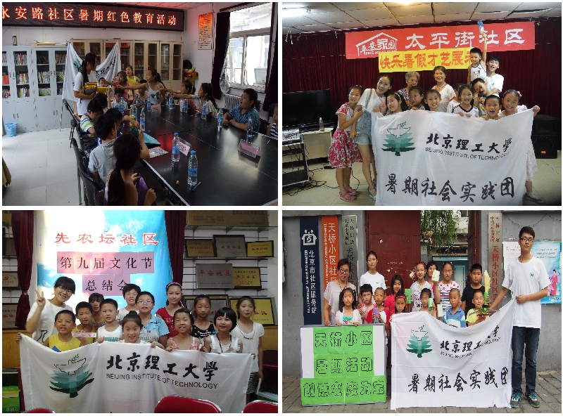 在為期一個月的實踐中,同學(xué)們在各自領(lǐng)導(dǎo)的帶領(lǐng)下逐步了解并熟悉了自己的工作任務(wù)。天橋街道下轄八個社區(qū),每個社區(qū)分配了兩名實踐團(tuán)成員,同學(xué)們充分發(fā)揮主觀能動性,每個社區(qū)均開展了2個以上的自主活動,從策劃撰寫到物資購買再到組織實施,完全由社區(qū)工作的同學(xué)完成,,包括天橋社區(qū)的“繽紛橡皮泥大賽”、香廠路社區(qū)的“我是創(chuàng)意小廚手——愛心佳肴比賽”、留學(xué)路社區(qū)的小學(xué)生素質(zhì)拓展活動、永安路紅色教育活動、祿長街科普青少年活動、先農(nóng)壇暑期觀影活動、虎坊路“親自”故事大賽、太平街“快樂暑假才藝展示”活動等近二十項自主活動。與此同時還協(xié)助各社區(qū)的青教主任開展本社區(qū)的傳統(tǒng)活動近五十項。豐富多彩的活動獲得了社區(qū)青教主任和社區(qū)居民的廣泛認(rèn)可,整個團(tuán)隊的各項活動忙碌但有條不紊地進(jìn)展。