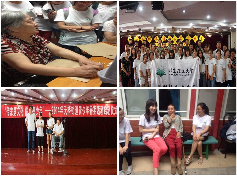 分配在街道機(jī)關(guān)工作的同學(xué)們在社區(qū)青年匯田老師的帶領(lǐng)下開展了四次全體參與的大型活動,無論是社區(qū)暑期活動啟動儀式還是和武警七中隊的聯(lián)誼活動抑或是參觀敬老院及盲文圖書館都能看見同學(xué)們充滿熱情地活躍著的身影。在天橋社區(qū)暑期活動啟動儀式中同學(xué)們從彩排到現(xiàn)場布置到主持都精心策劃,并為活動獻(xiàn)上了一個歌曲節(jié)目和小品節(jié)目;八一臨近前夕,由留學(xué)路主辦的軍民聯(lián)誼歌詠大賽更是展現(xiàn)了同學(xué)們的多才多藝和熱情大方,不管是現(xiàn)場小游戲還是軍民情歌對唱,同學(xué)們都能夠積極參與,為武警七中隊的官兵們帶去節(jié)日的問候;實習(xí)尾聲,同學(xué)們參與了寶心敬老院以及中國盲文圖書館的志愿者服務(wù),陪敬老院的老人們聊天,聽他們講生活的故事,;參觀盲文圖書館,盡微薄之力幫助到他人。這些活動讓同學(xué)們在學(xué)習(xí)如何服務(wù)的同時獲得了一定的成就感,也對志愿者的工作越來越感興趣。與此同時,借助天橋社會實踐的平臺,人文學(xué)院青年志愿者協(xié)會和中國盲文圖書館簽訂了長期志愿者服務(wù)的協(xié)議,志愿者們的服務(wù)精神也將一直傳承。