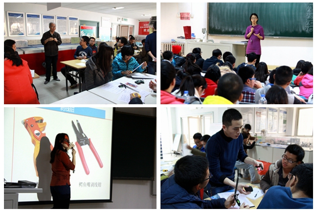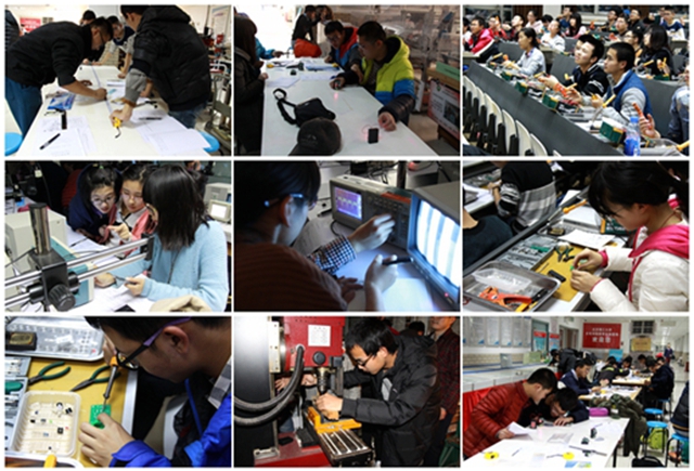 12月12日、13日兩天,信息一部組織2015級光電專業252人分兩批赴中關村校區進行實踐活動,每天將學生分組輪換進行制作、實踐、參觀。具體內容為:1、“紅外光電傳感器報警模塊探測距離和視場角的測量驗證實驗”,學生使用自制作品“紅外光電傳感器報警模塊和NE555經典應用模塊”,獨立完成反射式光電傳感器的探測距離和視場角測量驗證實驗,再兩人一組組成對射式光電傳感器,驗證測量對射式光電傳感器的探測距離和視場角。愛好電子技術的學生可以進一步在模塊基礎上擴展以實現更多豐富可控的功能,為日后參加大學生創新創業計劃,學科知識競賽創造條件打下基礎。這部分讓學生認識電子元器件和電裝基本工具及其使用方法、建立動手實踐的概念,培養動手實踐能力。2、CCD攝像機的應用,通過實驗建立“物”和“像”的概念,并用示波器觀測電視信號,使學生對圖像應用及專業課程產生興趣,初步掌握實驗操作方法和測試技術,為后續學習實踐課奠定動手實踐能力的基礎。3、參觀光電創新教育實驗基地,觀摩往屆優秀畢業生的作業作品及其成長歷程、往屆學生獲獎科技創新作品、國際大學生科技活動展示,觀看電子元器件及光電產品、數碼復印機、投影儀解剖件展臺展示。引領學生積極進取,以優秀學生為榜樣,樹立成才目標。