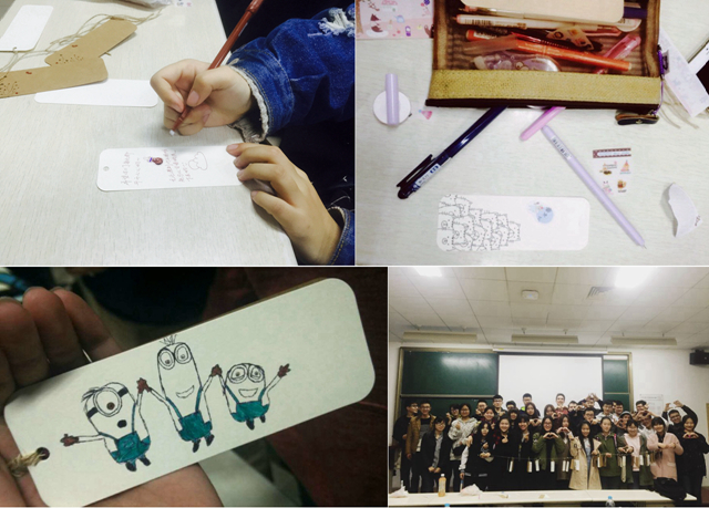 留守兒童是一個(gè)特殊的群體,設(shè)計(jì)學(xué)院在心理健康節(jié)期間推出推出 “關(guān)愛兒童,手繪書簽”活動(dòng)?;顒?dòng)通過前期宣傳,面向全校學(xué)生征集“手繪書簽”志愿者,搭建平臺(tái)使每一位活動(dòng)參與者用心為留守兒童繪制書簽。同學(xué)們借助手中創(chuàng)作的書簽,為留守兒童帶去了關(guān)心愛護(hù),在參與奉獻(xiàn)愛心的同時(shí),提高自身的社會(huì)責(zé)任感。制作完成的手繪書簽,由設(shè)計(jì)學(xué)院青年志愿者協(xié)會(huì)送到了留守兒童小朋友手中,為他們傳遞了愛心。