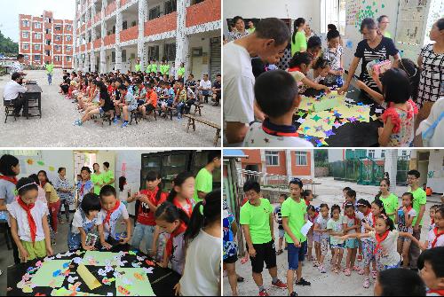 最后的結業聯歡會在教室舉行,實踐團成員提前將教室布置成了展覽館,展出孩子們的繪畫和折紙作品。聯歡會開始后,孩子們帶著家人立刻涌進來,寬敞的教室立即變得擁擠不堪。隨后,實踐團成員將從北京帶來的紀念品贈送給孩子們,并給每人準備了一張合照留作紀念,孩子們用歌聲作為回報,一首《讓我們蕩起雙槳》尤為令人感動。除此之外,實踐團成員還舉辦了趣味運動會,現場歡聲笑語不斷。