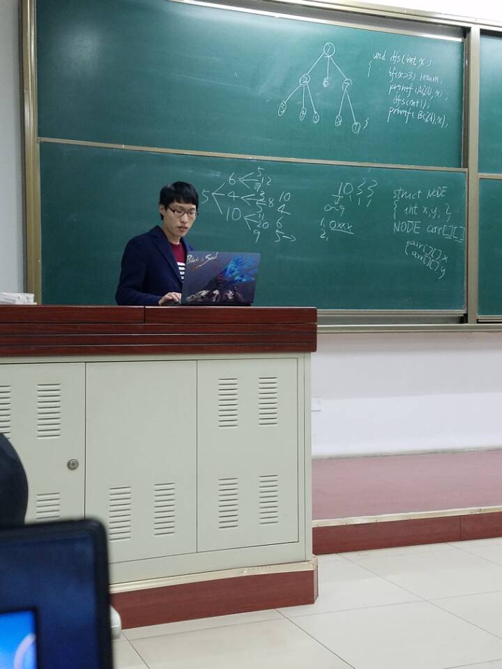 第二周培訓由基地算法實驗室2015級成員李東同學開展基礎培訓,講解深度優先搜索;李宇輝同學開展進階培訓,講解線段樹算法。2016級優秀學生韓有方輔助學長,詳細講解和點評上一周的練習題目。李東同學從一個簡單的路徑搜索入手,展示了這種搜索策略的大體思想,在臺下同學理解這種思想之后,又將深度優先搜索拓展到了更廣闊的應用范圍里,同時以“八皇后”問題為例引入回溯法這一重要編程思想。臨下課時,李東同學鼓勵大家多實踐,多在紙上模擬并體會深度優先搜索的算法流程。在接下來的一個小時里,李宇輝同學帶來本學期第一次進階培訓——線段樹的講解。李宇輝同學詳細闡述了線段樹的組織結構、時間優勢、內存占用等問題,每當臺下同學們面露難色時就停下并留給大家一定的思考時間。課后,李宇輝同學解答了同學們的一些疑惑,并再次強調要多思考、多畫圖來理解這一數據結構。