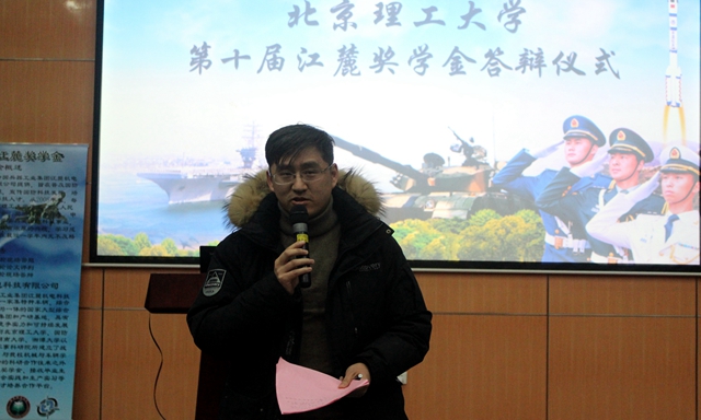 編輯:武穎 審核:范文輝 閱讀次數(shù):2017年12月28日,北京理工大學(xué)第十屆“江麓獎學(xué)金”答辯儀式在良鄉(xiāng)校區(qū)綜合教學(xué)樓報告廳隆重舉行。“江麓獎學(xué)金”由江麓機(jī)電集團(tuán)有限公司設(shè)立,旨在普及國防科技知識、宣傳國防科技發(fā)展前沿技術(shù)、培養(yǎng)合格的國防科技人才,自2008年設(shè)立以來每年都吸引著大批對軍事非常熱愛的本科生參與評選,本屆評出獲獎學(xué)生15名,每人獎勵6000元。