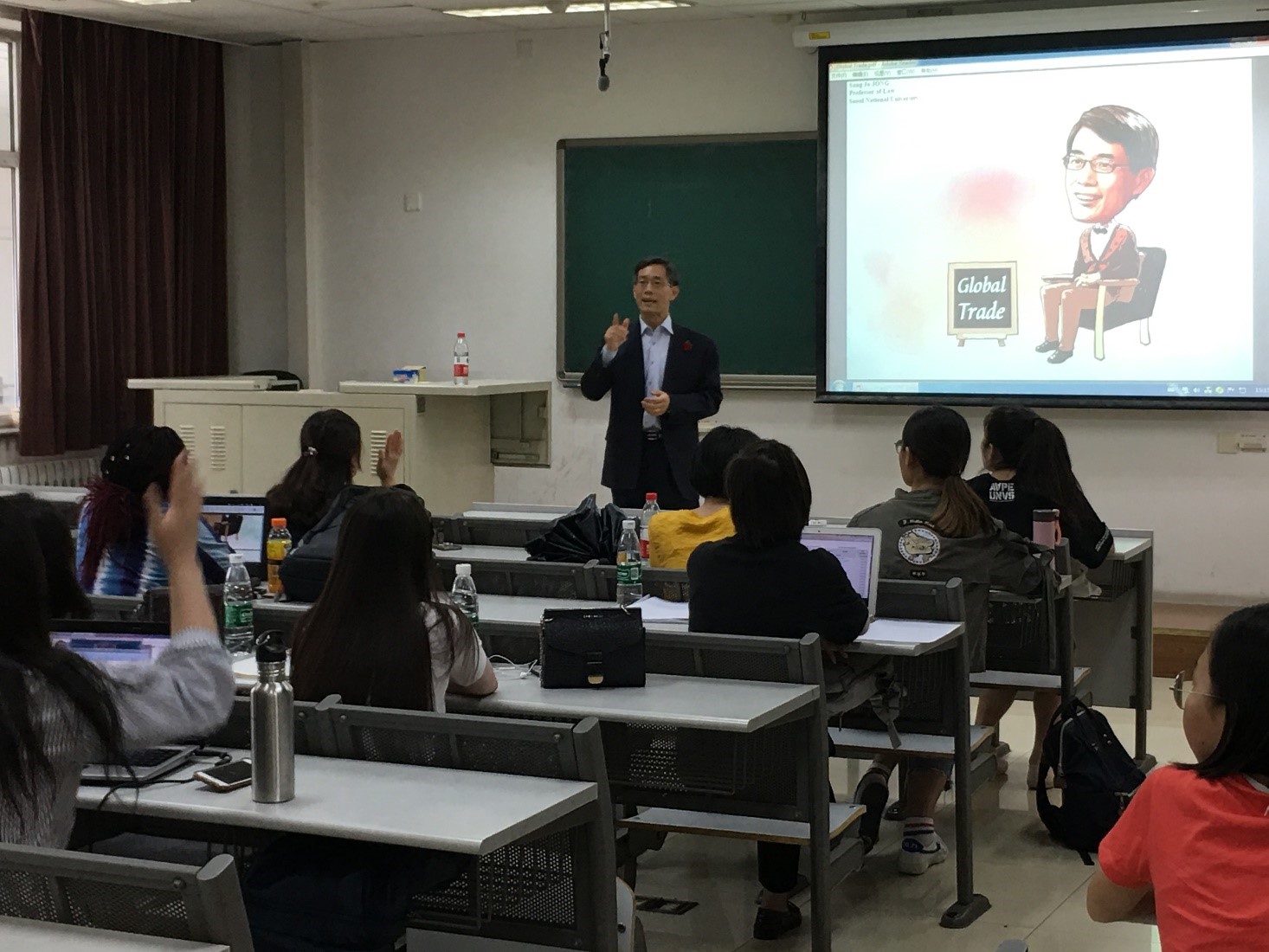 丁相朝此次到法學院進行一周的講學。他從全球視野介紹了中國的對外貿易發展,并詳細講授了從絲綢之路到一帶一路,從中國唐代到宋代,從英國光榮革命到中國偉大復興,世界貿易的歷史發展變化。丁相朝提出了一系列值得思考的問題,并與同學們進行互動。此次他將給同學們分析了SCM公司與施樂公司專利權糾紛,三星與蘋果的專利糾紛等知識產權糾紛案例,用大量數據講授了國際貿易和知識產權保護之間的關系,以及專利糾紛對國際貿易的影響。