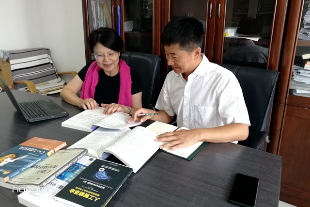 教學(xué)小組成員高飛教授與吳浩老師備課場景