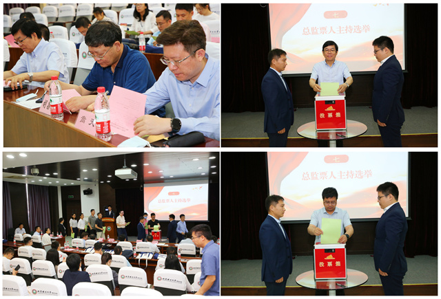 大會進行了學院第一屆教職工大會執行委員會委員、第一屆工會委員會委員的選舉工作。劉蓮匯報了大會籌備工作報告。選舉環節由總監票人丁力主持,與會人員充分行使民主權利,以無記名等額投票選舉產生了學院第一屆教職工大會執行委員會委員6人(以姓氏筆劃為序):劉蓮、張中山、羅森林、鄭軍、彭圖、譚毓安,以及學院第一屆工會委員會委員9人(以姓氏筆劃為序):喬珂欣、危勝軍、劉蓮、劉琨、沈蒙、苗夏箐、郝浩倩、彭圖、潘高峰。