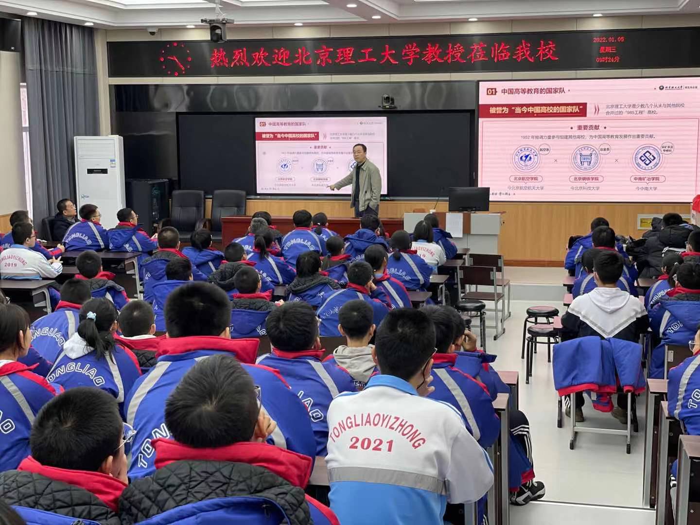 招生組在通遼第五中學舉行了優秀生源基地授牌儀式暨人才培養座談會。通遼市教育局副局長田向陽,通遼第五中學校長王子忠、黨委書記白茹、副校長沈潤生、副校長高占清等參加座談會。會上,王文中教授作題為“相約北理 共筑夢想”的主題宣講,高一、高二年級學生代表及高三年級學生家長代表參加宣講。隨后,招生組分別在通遼第一中學、通遼實驗中學召開了兩場宣講會,通遼第一中學校長陳久明,通遼實驗中學校長周玉、副校長陳玉國等參加了宣講會。