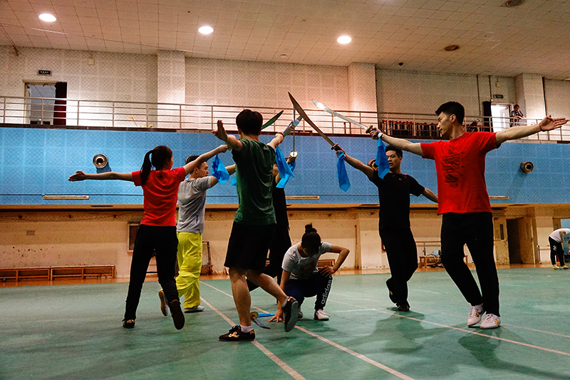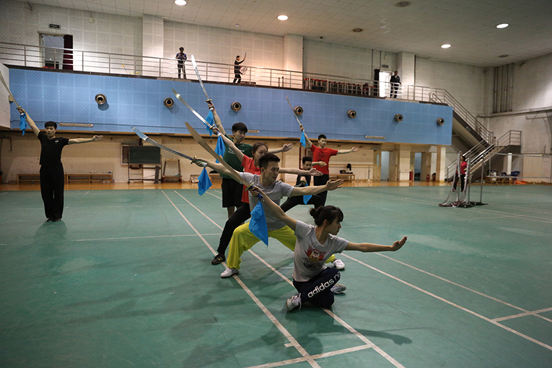 張老師則經(jīng)常奔波于兩校區(qū)之間,常常是上午還在良鄉(xiāng)校區(qū)上課,一下課就得趕往中關(guān)村校區(qū)指導(dǎo)武術(shù)隊(duì)的訓(xùn)練。“良鄉(xiāng)的體育課是日常教學(xué),這個(gè)不能放松,兩頭工作都得做好。不只是我一個(gè)人,體育部負(fù)責(zé)開幕式表演的幾位老師都是這樣的。”