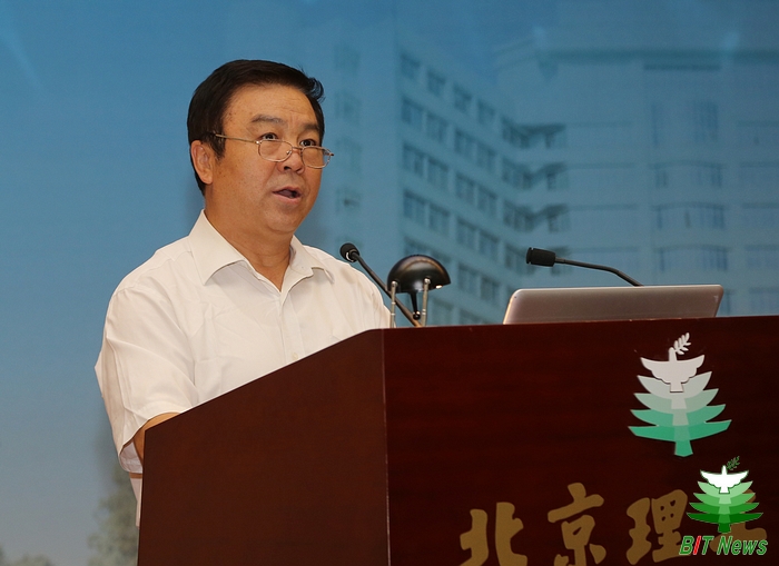 校長胡海巖代表學校講話。他首先代表北京理工大學全體師生員工,向出席大會的各位校友表示熱烈的歡迎,向全校師生員工和全體校友致以節日的祝賀。他表示學校堅持以建設世界一流理工大學為目標,實施“6+1”發展戰略,在學科專業水平、師資隊伍實力、人才培養體系、科技實力和水平、國際辦學格局、辦學基本條件、制度和文化建設方面均取得重要進展。胡海巖指出,學校第十四次黨代會提出分步走發展目標,到2020年,學校發展成為亞洲一流理工大學,到2040年,學校建設成為世界一流理工大學。他希望全體師生員工、廣大海內外校友,戮力同心,攜手并進,一起傳承北理工的優秀品格,合力書寫北理工新的故事,共同鑄就北理工新的輝煌!