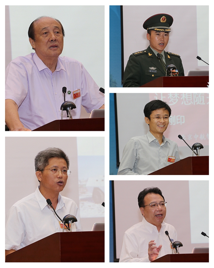 第五屆校友論壇由學校校友、共青團北京市委副書記楊海濱主持。吉林省人民政府原省長、現任中國職業經理人協會會長洪虎,全國勞動模范、中國兵器首席專家毛明,駐藏某旅作訓科參謀高永東,北京中航智科技有限公司創始人田剛印,中軟國際有限公司董事局主席及首席執行官陳宇紅分別代表政府部門、科研領域、軍隊系統、民營企業的校友發言。洪虎談到母校對個人學業德行的教誨,基層對個人意志能力的磨煉,是自己獲得成功的無形財富,他祝愿母校在全校師生的共同努力下,創造更加輝煌的明天。毛明通過自身參研經歷介紹了我國坦克裝甲車輛技術的發展歷程,并為現場學生提供了成長感悟和擇業啟示。高永東匯報了通過忠誠與執著,在崗位上建功立業,實現夢想的三點體會,一是要胸懷夢想,肩負責任;二是要腳踏實地,砥礪前行;三是要堅定信念,迎接挑戰。田剛印感謝了學校為他實踐夢想提供的平臺和支持,介紹了自己在無人直升機領域將創新轉化為創業的經歷和成果,鼓勵在校學生積極參與創新實踐,在不懈努力中實現夢想。陳宇紅回憶了在校期間的難忘經歷,分享了創業圓夢中的個人體會,鼓勵母校學子團結協作,共同擔負起實現國家振興的重擔。