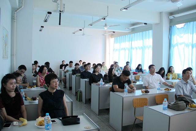 午餐后,在中教526教室舉辦了“外國(guó)語(yǔ)學(xué)院校友懇談會(huì)”。院長(zhǎng)李京廉、書(shū)記陳大明、副院長(zhǎng)姜愛(ài)紅、副書(shū)記副院長(zhǎng)吳文君以及各系部主任、教師以及全體返校校友參加。大家濟(jì)濟(jì)一堂,室內(nèi)洋溢著喜慶和溫暖。座談會(huì)由吳文君老師主持。