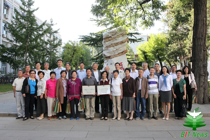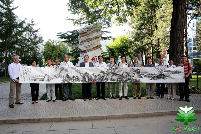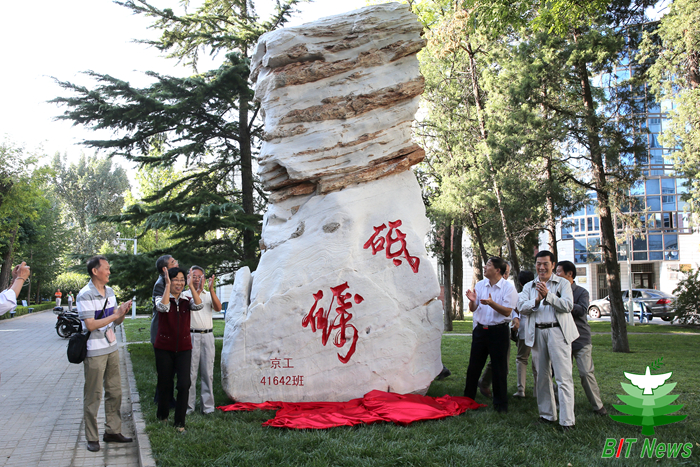 秉承京工精神砥礪前行,畢業五十載情系母校。2015年9月19日,在北京理工大學建校七十五周年校慶之際,光電學院41642班“砥礪”文化石、書畫捐贈儀式在七號教學樓前舉行。北京理工大學黨委副書記、副校長項昌樂,原黨委書記焦文俊,宣傳部部長包麗穎,校友會辦公室主任段麗萍,后勤集團常務副總經理宋希博,光電學院院長薛唯,規劃處副處長周連景,教育基金會辦公室主任羅雪和41642班部分校友參加了捐贈儀式。儀式由光電學院院長薛唯主持。
