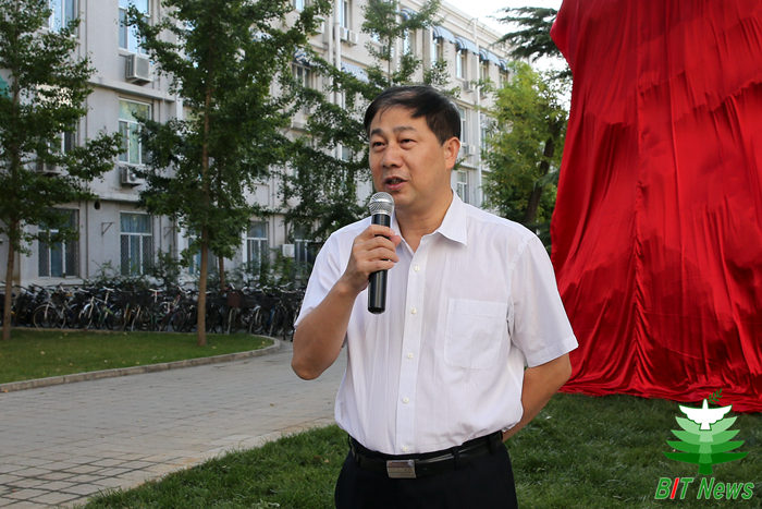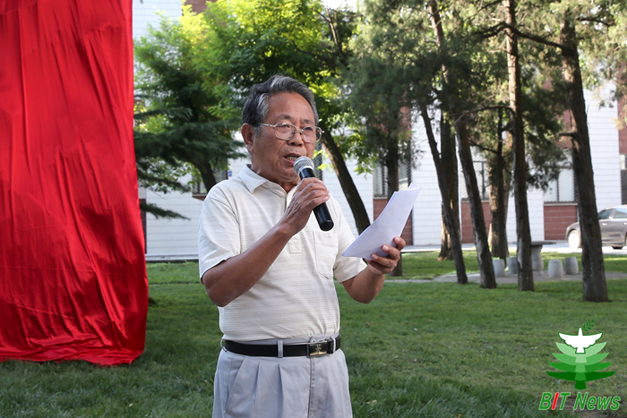 41642班同學代表劉長躍校友介紹了“砥礪”文化石的由來和寓意,表達了對母校的感恩、祝福之情和對年輕學子們的殷殷期待。他談到,“砥礪”文化石代表著京工41642班全體同學對母校的深厚感情,寓意著希寄母校發揚延安精神,砥礪奮進,續寫輝煌。