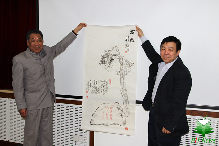 最后焦文俊談到,當年京工書畫社的成立對于學生發揮藝術特長,在藝術氛圍中的成長具有積極的意義。他強調,盛自強校友將自己多幅書畫精品捐獻給母校,這在校友感恩母?;顒又猩袑偈状?,相信盛自強校友情系理工的熱情將感染更多的書畫校友投身到母校校慶活動中。