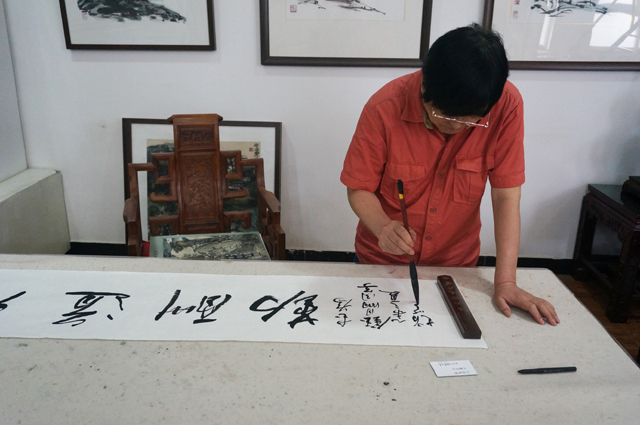 這位趙學長是山東金鄉縣人。作為一位書畫家,他希望貧窮落后的家鄉也能有更多人愛上書畫,于是當時的他開設了一個書法國畫班,并堅持不懈地教學。金鄉縣本是一個不知名的小地方,當年趙學倫先生在這里開辦書法班教授書畫時,從沒想到金鄉縣將會因為書法家多而成名。在當時那個班,最小的學生僅十七八歲,最大的甚至比當時趙的年齡還大。如今,他們之中不少人已經是中國書法家協會的會員,不僅在山東省而且在全國都是數一數二的書法名人。于是金鄉縣的名氣也傳開來了,趙先生的書法教育開始得到當地政府的重視,政府決定撥款支持家鄉書畫藝術的傳承,談到這個,趙先生感到非常自豪,他覺得自己為中國的傳統文化藝術傳承做出了自己的一點努力。