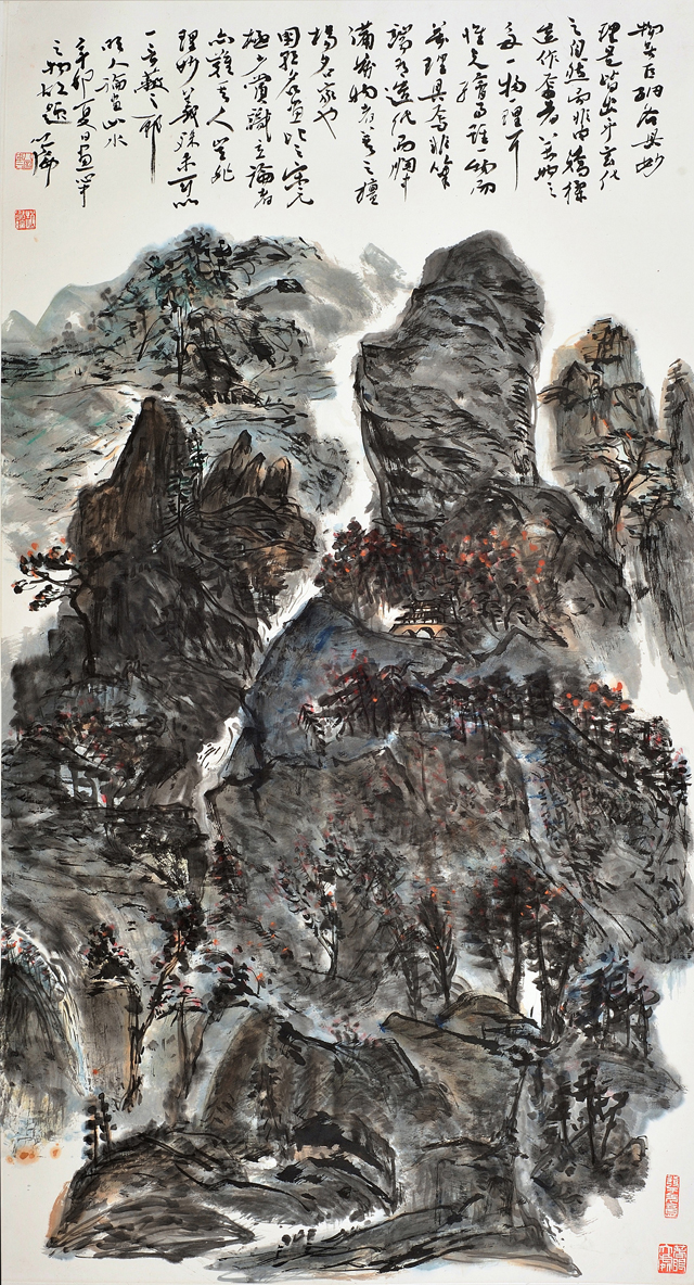 幾十年來他爬山涉水,哪里有名山,哪里有秀水,哪里有大川,哪里就有趙學倫的影子。走遍全國只為超越自我,只為創作一幅幅賞心悅目的作品。這正應了王安石一句“而世之奇偉、瑰怪、非常之觀,常在于險遠,而人之罕至焉,故非有志者不能至也。”盡管已經退休,趙先生亦不放棄,仍然堅持親自實地取材作畫,難怪耳順之年的歲月并沒有在先生的臉上刻有過多的痕跡。相反,他展現出的是四十而不惑的風華正茂,這或多或少都與他年輕的心態有關,只有積極向上的人生才能時刻展現給人們一種不凡的精神面貌。