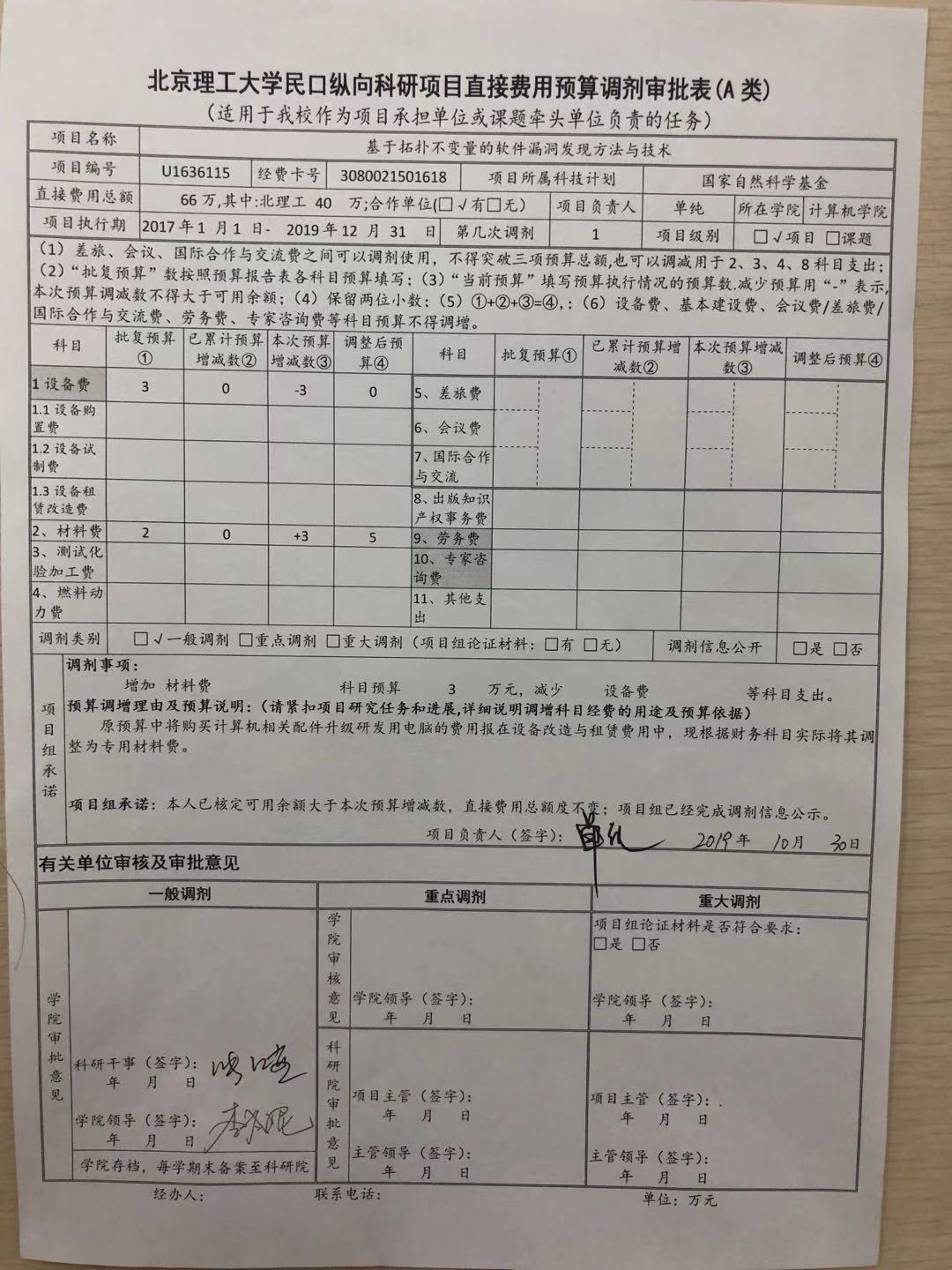 項目U1636115預算調劑審批表