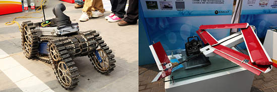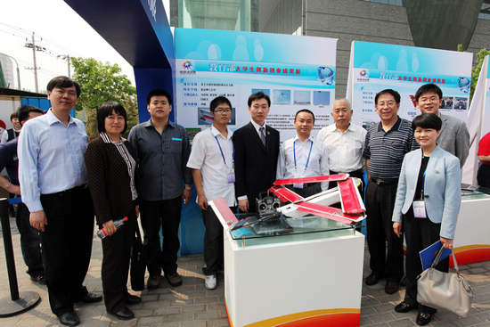 其中,我校的“新型特種搜救機器人”(2009年第二屆全國大學生創新論壇"我最喜愛的十件作品"之一)和“基于火箭發射的折疊式無人機”(第十一屆"挑戰杯"全國大學生課外學術科技作品競賽全國一等獎)兩項作品參加了本次成果展,得到了劉延東、萬鋼和其它有關部門領導的關注和肯定,參會同學也得到了教育部高教司和我校領導的關心和鼓勵。