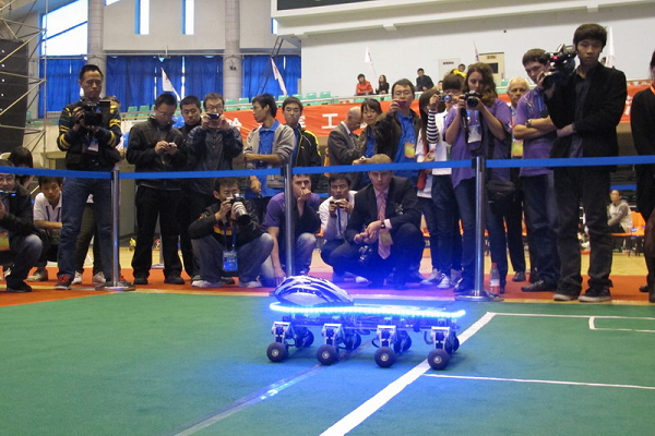 為加強中俄兩國大學生的科技與文化交流,提升兩國大學生的科技創新能力,增進"中俄工科大學聯盟"內各高校間的友誼,2011年10月12日,首屆"中俄工科大學聯盟大學生機器人創新大賽及展示"活動在哈爾濱工業大學隆重開幕,本次活動由哈爾濱工業大學聯合莫斯科鮑曼國立技術大學共同主辦。中俄兩國30所一流的工科院校紛紛攜帶最能代表本校大學生科技實力和創新精華的機器人與會。我校機電學院羅慶生老師帶領機器人代表隊參加了此次活動,趙顯利副校長參加了在北京理工大學舉行的閉幕式。
