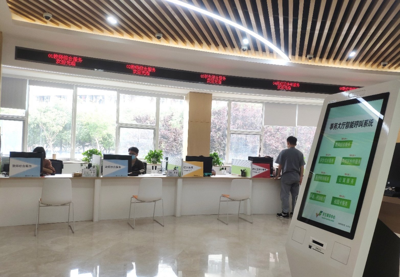 2.人工柜臺(tái)區(qū):設(shè)置2個(gè)教師綜合服務(wù)窗口,可辦理人事、財(cái)務(wù)、科研等多類業(yè)務(wù),著力實(shí)現(xiàn)教師服務(wù)事項(xiàng)一窗集成辦理,目前可辦理的服務(wù)事項(xiàng)見(jiàn)附件。