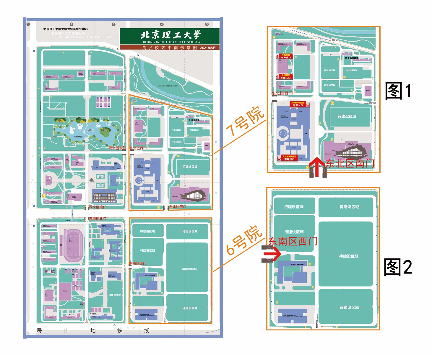 2. 良鄉校區東南區(良鄉東路6號院)開放西門進出,南門和北門暫時關閉。(位置如圖2所示)