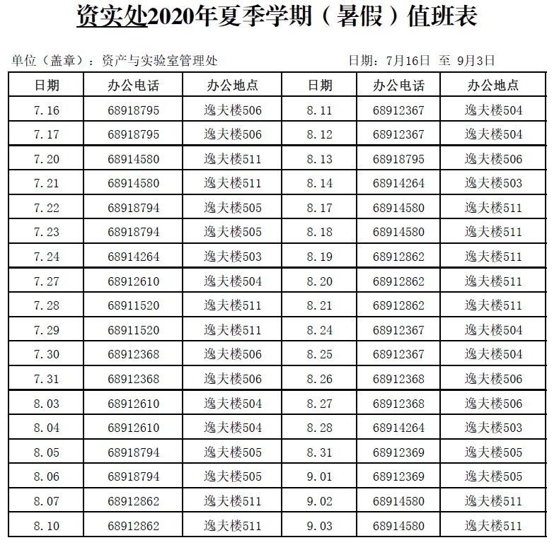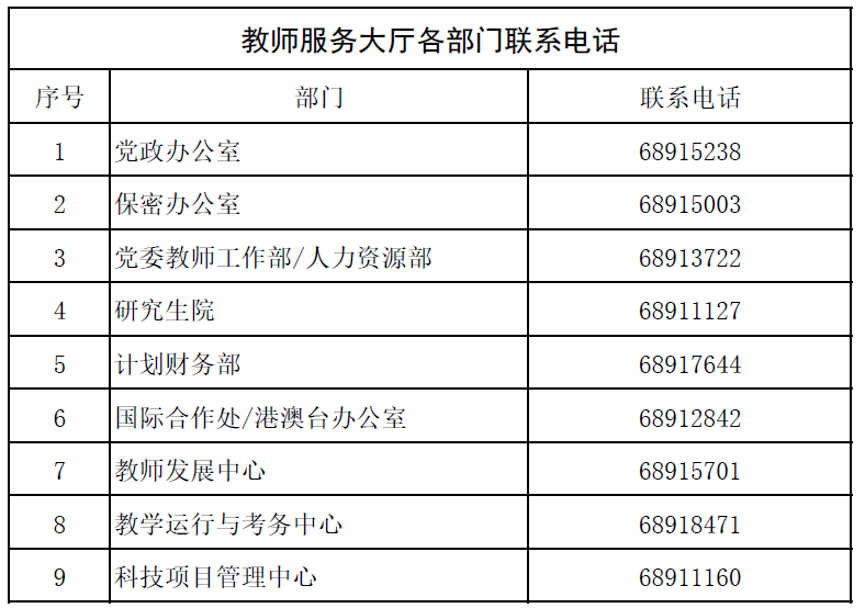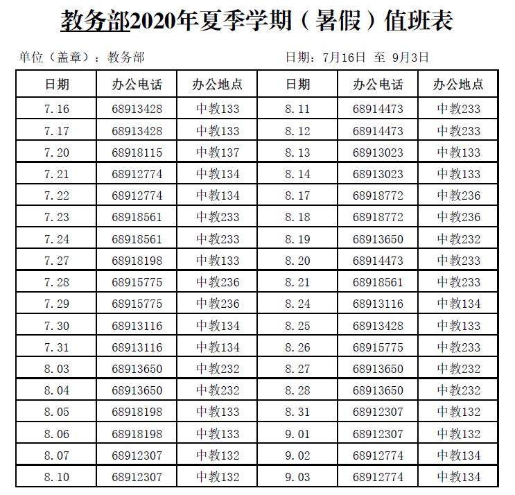 (注:保密辦公室、教務部暑假期間所有業務辦理地點臨時調整為中心教學樓;資產與實驗室管理處暑假期間所有業務辦理地點臨時調整為逸夫樓。部門辦公電話詳見附件。)