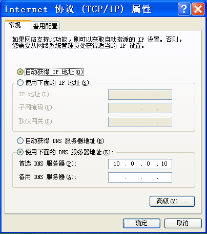 5、“使用下面的DNS服務器”中“首選DNS服務器地址”仍然填寫“10.0.0.10”。