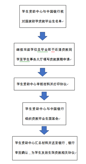 現學校開始辦理國家助學貸款畢業生相關手續;包括辦理國家助學貸款畢業生的還款確認手續(面向所有辦理了貸款的畢業生)及貸款展期手續(面向繼續攻讀學位學生)。