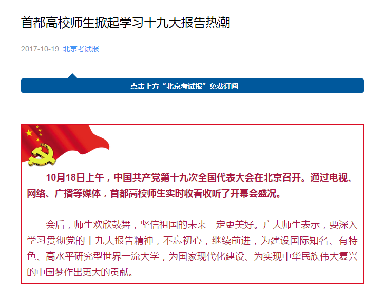 【北京考試報】首都高校師生掀起學習十九大報告熱潮