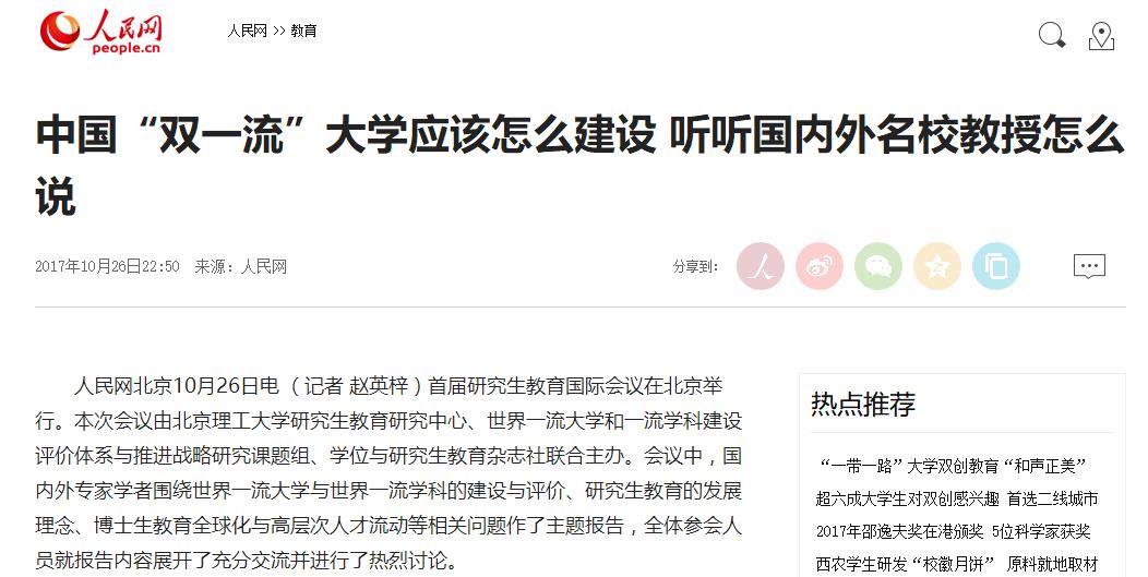 【人民網】中國“雙一流”大學應該怎么建設 聽聽國內外名校教授怎么說