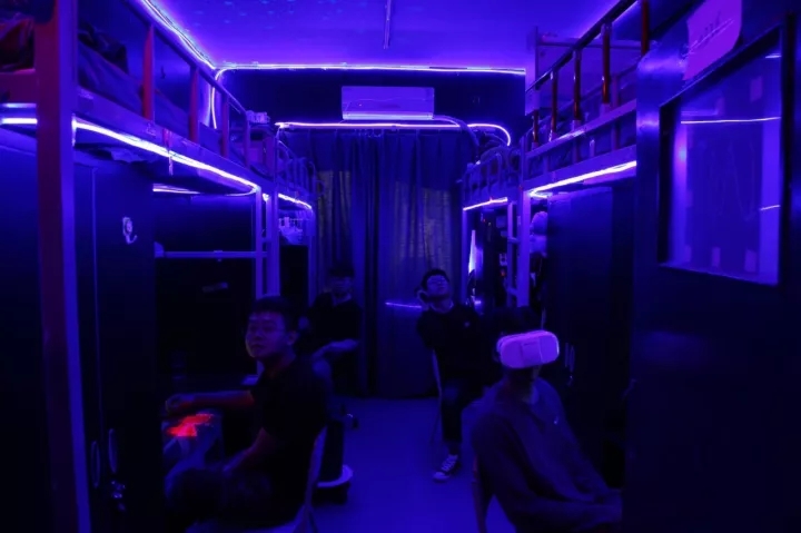 22歲的他戴著圓圓的眼鏡,符合大眾認知中“理工男”的樣子。6月份剛搬到新校區的他,和室友們用2周時間完成了一個充滿未來科技感的宿舍改造項目,這是他在大學生活中將理論變為現實的第一個大項目。