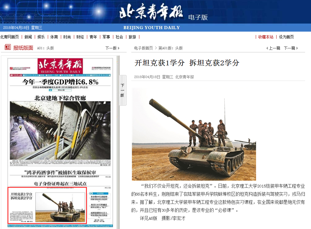 【北京青年報·頭版】開坦克獲1學分 拆坦克獲2學分