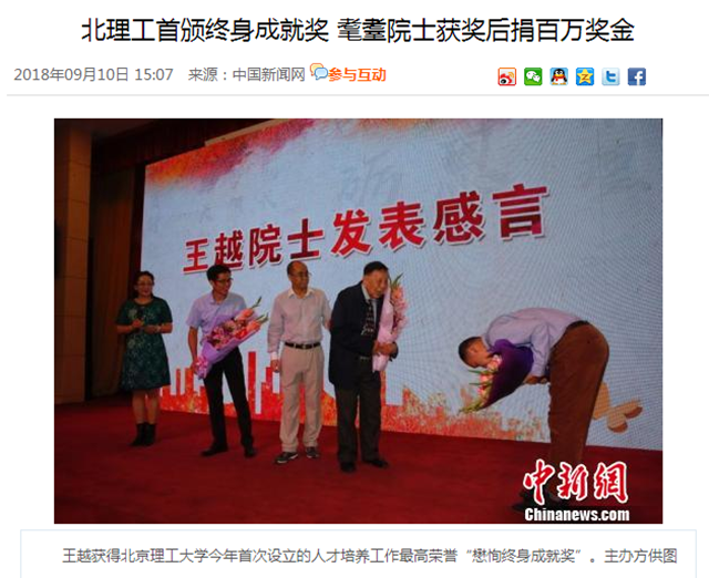 對于獎金的使用,王越表示,自己將捐出本次獎金,設立專項獎學金用于支持學校教育事業發展,特別是本科生的基礎教育。