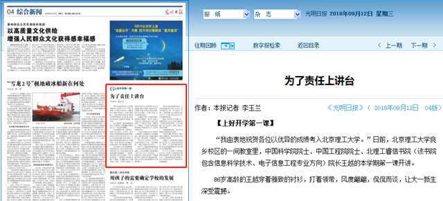 【光明日報】北理工王越院士:為了責任上講臺