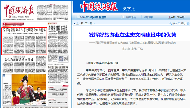 【兩會?中國旅游報】發揮好旅游業在生態文明建設中的優勢