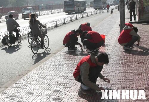 【新華網(wǎng)】大學(xué)生周末清洗京城“小廣告”
