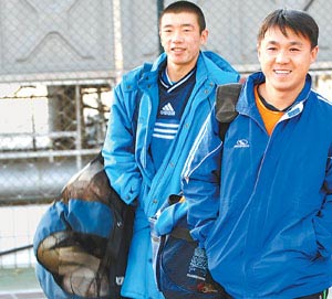 沒有統一的訓練服。每天訓練,隊員們都穿得五顏六色。比賽服是韓國KIKA贊助的,雖然只是個二流品牌,這群學生已經頗為滿意了,平時不舍得穿,都想把新的比賽服留在大賽時穿。至于平時訓練,“不用那么講究”。學校每年會發給隊員一雙球鞋,因為使用頻率太高,不到一年,有的球員的鞋就壞了,“可是也舍不得買新的”。
