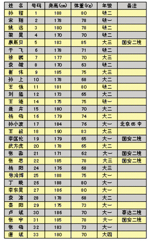 北理工足球隊球員一覽表 (注:除“備注”外,所有隊員都來自人大附中三高俱樂部)