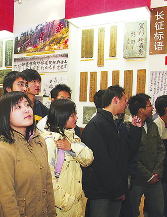 12月8日,北京理工大學理學院的團員們在中國人民軍事博物館參觀《偉大壯舉光輝歷程——紀念中國工農紅軍長征勝利70周年》大型主題展覽。賈慧穎(左二)同學說,我們是大一學生,今天是我們“弘揚長征精神主題團日”。長征精神是一部永遠讀不完的書,值得我們永遠學習。