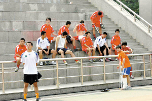作為一名研究生,袁微的課程比其他隊(duì)友要少一些,并且他已經(jīng)基本確定畢業(yè)后留校,這也讓他比其他隊(duì)友輕松很多。這個(gè)研究生每天的生活都是一樣的“單調(diào)”:早上在課室或者圖書(shū)館寫(xiě)畢業(yè)論文,下午到球場(chǎng)訓(xùn)練——這也是他們球隊(duì)幾乎所有球員的生活軌跡。“最好的休息?睡覺(jué),或者看看電影,還有就是在小賣(mài)部吃吃燒烤,喝瓶啤酒。”學(xué)生球員們認(rèn)為自己和“話劇社”、“文學(xué)社”的同學(xué)沒(méi)有差別,足球隊(duì)也僅是學(xué)校的一個(gè)社團(tuán)。中國(guó)職業(yè)足球員的高薪離他們還很遠(yuǎn),像袁微、楊思源、康斯貝這些主力球員,享受到的待遇僅是學(xué)校提供的800元~900元的獎(jiǎng)學(xué)金,待遇最好的是金俊值和韓濟(jì)光等韓國(guó)留學(xué)生,他們的待遇是減免學(xué)費(fèi)。