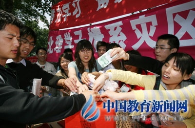北京理工大學師生向災區捐款。本報記者 修伯明 攝