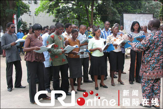 拉各斯大學藝術系的學生為孔子學院成立獻歌