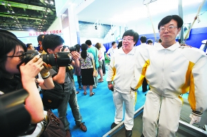 本次展出的“匯童”系列是最新4代、5代仿人機器人。據記者了解,“匯童”4代仿人機器人以真人為藍本,其1.7米的身高、65公斤的體重與真人相仿。機器人不僅可完成自主行走、打招呼、打太極拳、跳舞等動作,還可以逼真呈現人類面部喜、怒、哀、樂等細致表情動作。